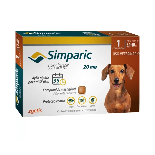 Antipulgas Simparic 20 mg para cães 5,1 a 10 kg - Zoetis