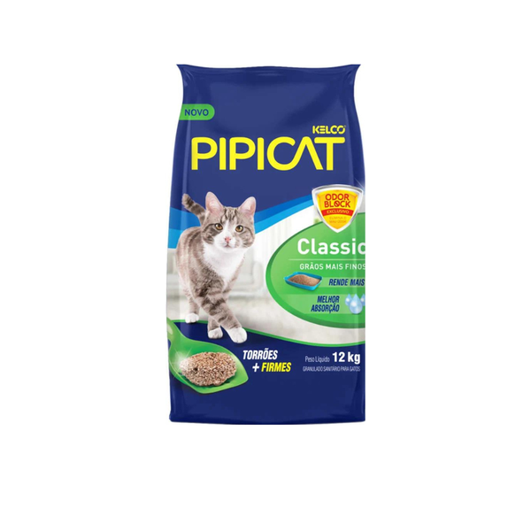 A Areia Sanitária Kelco Pipicat Classic possui grânulos médios que garantem a retenção da urina e controle do mau cheiro, além de formar torrões concentrados e resistentes que facilitam a remoção. Possui cheiro e cor natural de terra que atraem o instinto do gato.