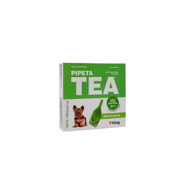 Pipeta Tea é uma solução pulguicida composta por ativos extremamente seguros e aplicados por via tópica em cães, variando a dose pelo peso indicado em cada embalagem.